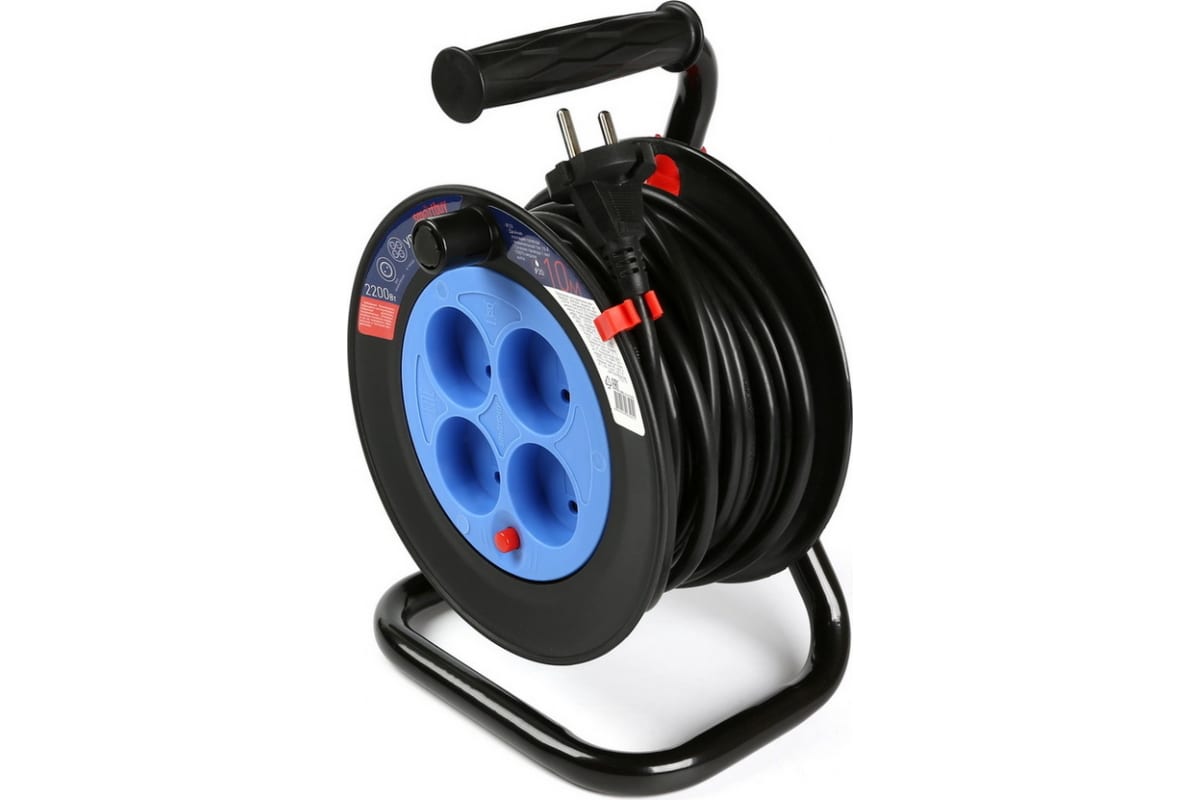 Удлинитель на катушке SmartBuy 4 гнезда, 10А, 2200Вт, 10м без/заземл, предохранитель, черный